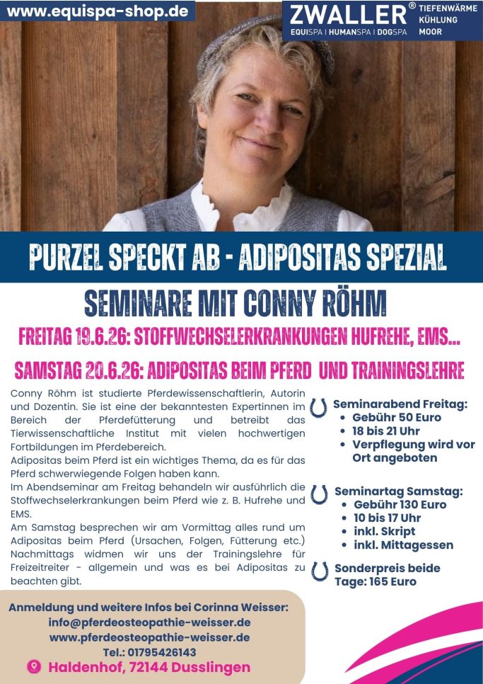 Samstag 21.6.26 Tagesseminar "Adipositas beim Pferd/Purzel speckt ab, Trainingslehre für Freizeitreiter"