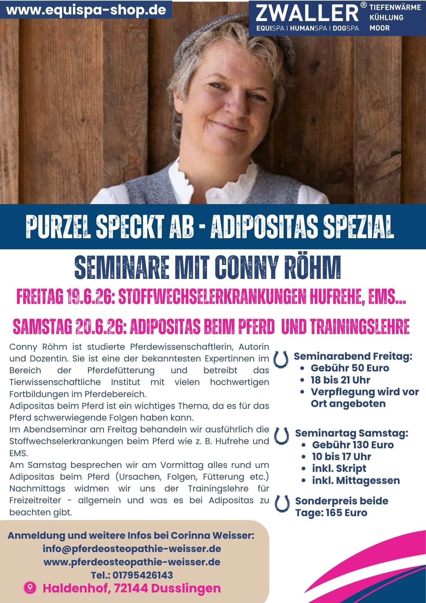 Samstag 21.6.26 Tagesseminar "Adipositas beim Pferd/Purzel speckt ab, Trainingslehre für Freizeitreiter"